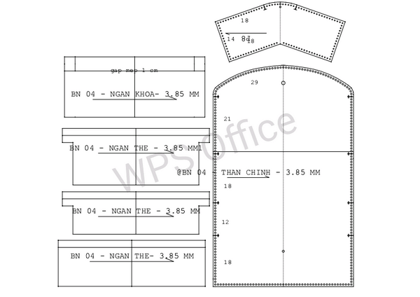 Rập (Cuối bài viết sẽ có một file để bạn tải file rập, bạn in ra giấy A2, sau đó dán lên giấy cứng và cắt rập. Rập được thiết kế chính xác, chi tiết).
